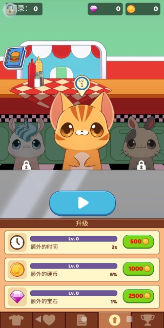 3.如下图所示,在升级面板中,玩家可以消耗金币来升级各项属性,从而可以在关卡挑战中获取更好成绩。
