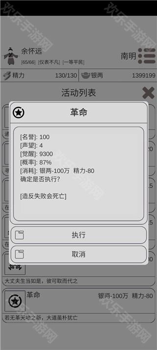 1、之前看到有人说革命进度一直卡在0,我就特意去试了试。六十多岁的时候总算成功了,不过因为没留意大明的稳定度,结果它一不小心分裂成了南明,平白多耗了些时间。