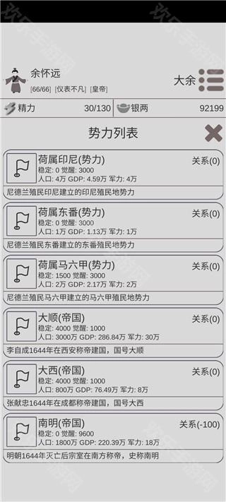 11、大家都知道这个游戏目前还处于半成品状态,不仅存在不少bug,很多功能也尚未完善,像游戏里已经出现了南明势力,可大明王朝依然存在,起义军势力也还在活跃着。