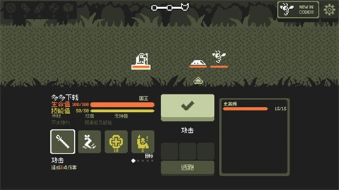 碰到敌人后,玩家可选择进攻或者逃跑;