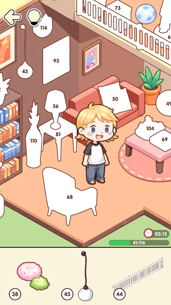 踏入初始关卡,视野里便出现不少带有数字标识的未填充物品,而下方的贴纸区域也陈列着与这些数字相匹配的物品。