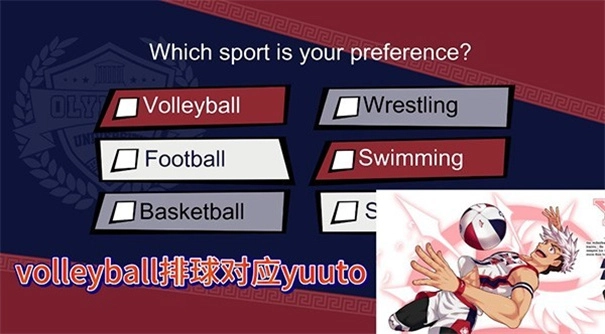 选择你喜爱的运动,每个选项都对应着一个攻略对象。需要说明的是,之前提到的“足球”存在汉化错误,正确的应该是橄榄球。