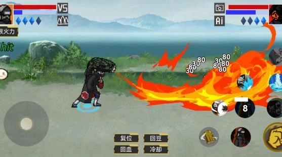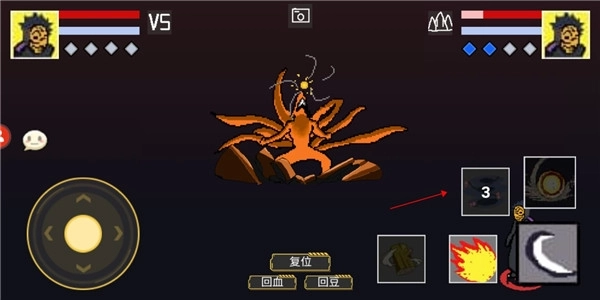 3、头像旁显示着血条与蓝条,尤为关键的是可释放大招的次数,游戏采用像素图形精准还原了每位忍者的战斗技能,部分技能甚至保留了原声配音。