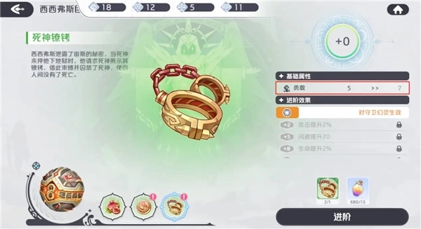 神器升阶包含宝物进阶与神迹进阶两部分:宝物升阶需消耗同名宝物及进阶材料,其进阶等级以+n的形式呈现;只有当神迹所关联的整套宝物均完成一次进阶后,才能消耗进阶材料对神迹本体进行一次升阶;升阶能够提高宝物与散件的数值加成,并且当宝物和神迹的进阶等级达到特定等级(即2加3的倍数的等级)时,它们带来的增益效果还会得到额外增强。