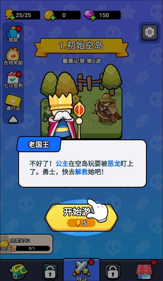 1、点击开始游戏,消耗体力。