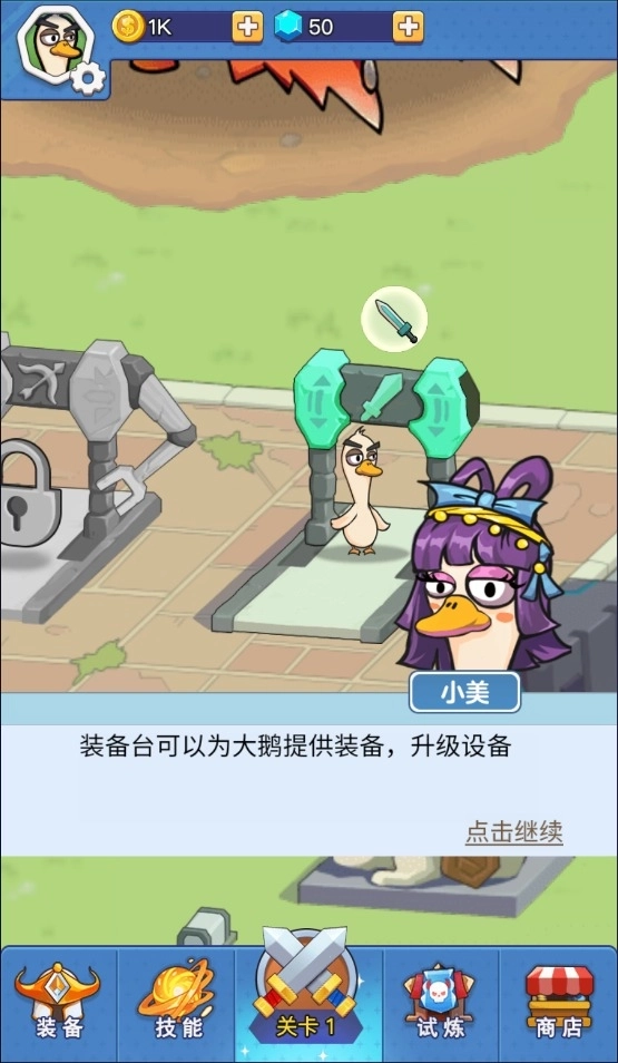 2、大鹅出生后需要去装备武器,提升战斗力。