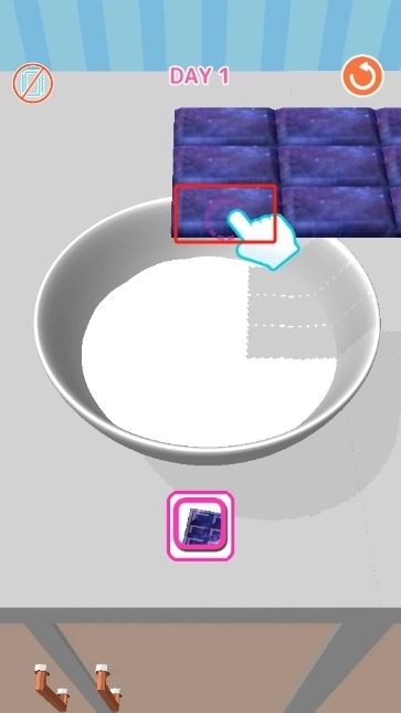 1、进入游戏,我们点击将巧克力掰入牛奶里面。