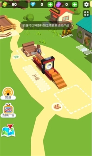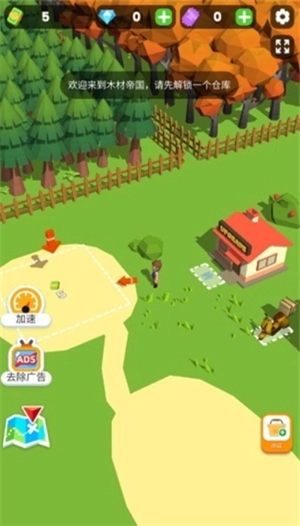 1、进入小小木材商游戏后,通过操作虚拟键盘来移动角色,点击界面方框里的钞票即可解锁一个仓库;