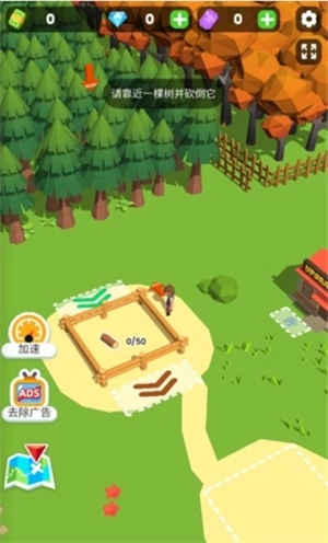 2、移动人物到树林中,靠近一棵树将它砍倒;