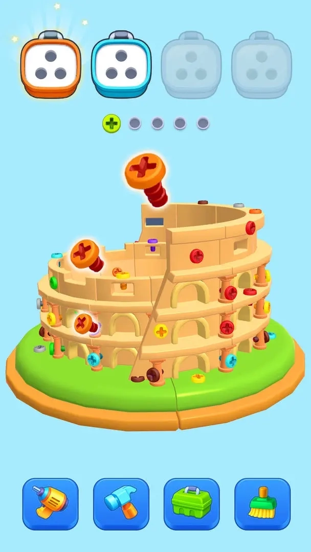 2、玩家能够借助各类强力道具平稳度过每一个难关。不管是快速拆除任意一颗螺丝,亦或是用锤子击碎障碍,甚至是撤销上一步操作来调整策略,这些都能助力你更从容地解决问题。