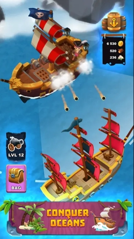 2、运用你的航海本领,操控帆船闯过风暴,凭借黑帆来应对海盗船的敌人。
