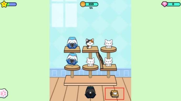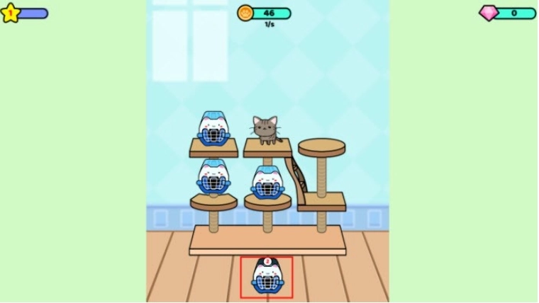 1、启动游戏后,映入眼帘的是一个架子和若干个猫笼。猫笼会依照倒计时自动孵化出新猫咪,等待时长较短,玩家能够轻松惬意地养猫,无需耗费过多精力。