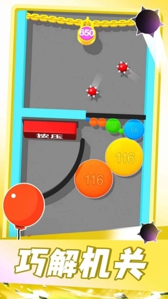 3、借助气球大小的差异能够更巧妙地设置障碍,这会带来更轻松的游戏体验,整个过程充满智慧。