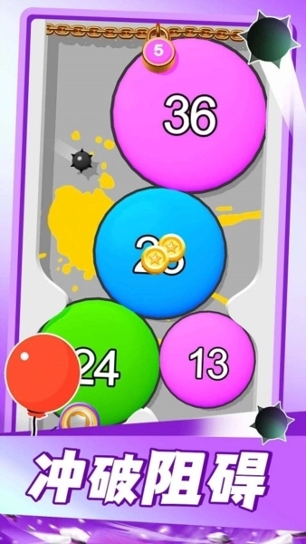 3、气球在上升时会遇到形形色色的障碍,其中带有数字标签的障碍可借助气球内部的数字进行抵消;一旦气球内部数字变为0,挑战便会失败。不过每一关的挑战目标存在差异,只要完成对应关卡的指定任务,就算气球内部数字是0也能顺利通关。
