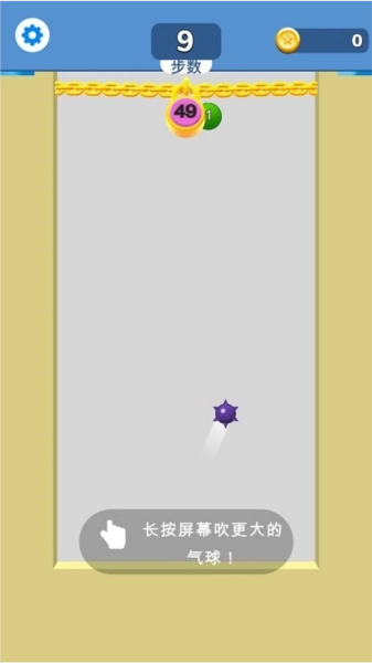 2、游戏开始阶段,玩家能通过长按屏幕来吹气球,气球的大小可由长按的时长与力度来调控。