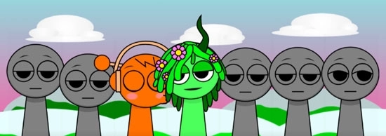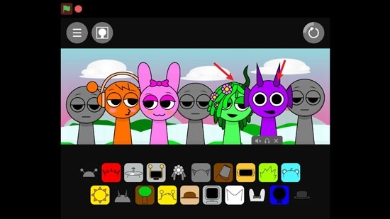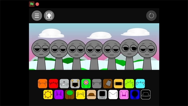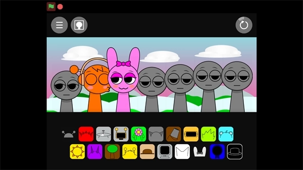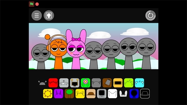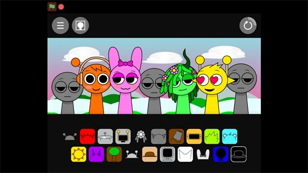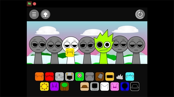 1、在本站找到并打开节奏盒子Sprunki亲吻版,进入游戏界面后,点击屏幕中间的绿色旗帜就能开始游玩了。