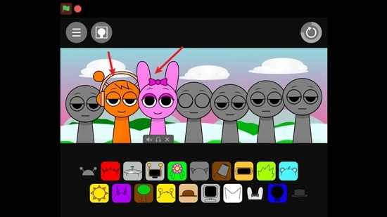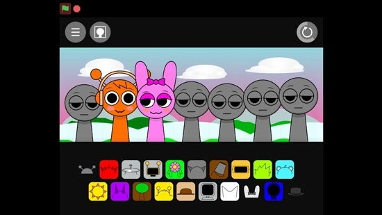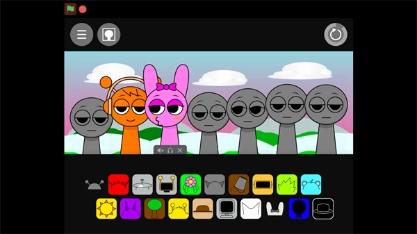 2、进入后,你会看到一排灰色的小人,下方还有各式各样的色彩和图案。接下来,你需要把下方的图案放置到小人身上,打造出一支专属于自己的多彩乐队。