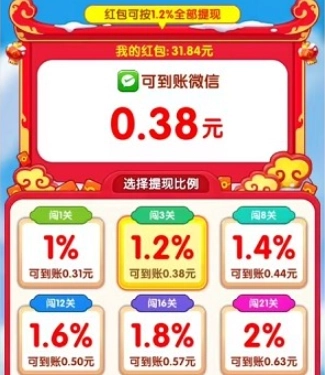 5、积累的红包最终都能按照百分之一的比例进行兑换,并且兑换比例还会随着闯关数量的增加而有所提升。