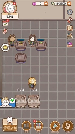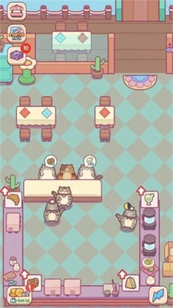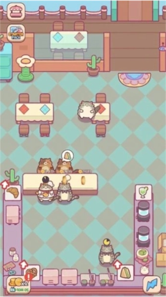 3、思考怎样让店里的猫咪客人们感到满意,玩家将扮演一位猫咪店主,经营属于自己的餐厅。