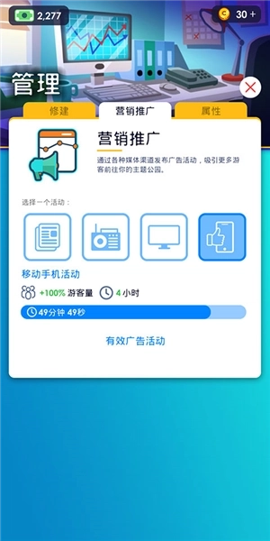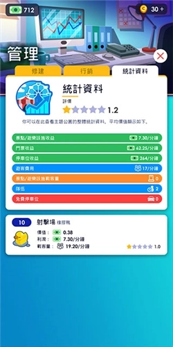 打开管理功能下的属性界面后,我们就能直观地看到闲置主题公园的各项基础数据,接着针对其短板进行针对性的补强就可以了。