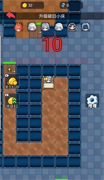 4、游戏正式开启后,玩家需收集金币来升级房门,同时建造防御塔等各类设施,以此抵御鬼怪的侵袭。