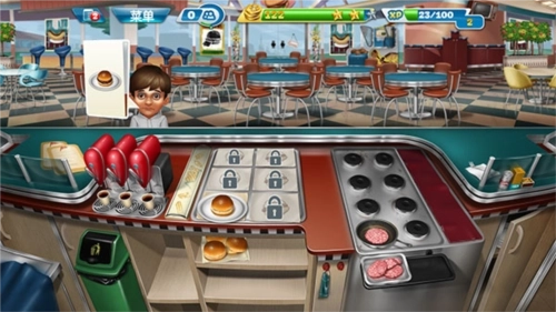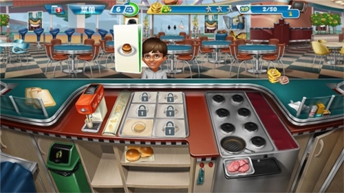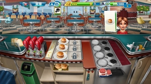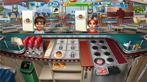 随着玩家持续解锁关卡,会获取更多新的食材与道具,同时也会愈发手忙脚乱。在此小编分享一个小技巧:不少客人会选择点套餐,而套餐里只要上了其中一款食物,就能延长顾客的等待时间,所以可以提前准备一些饮品,用来增加顾客的等待时长。
