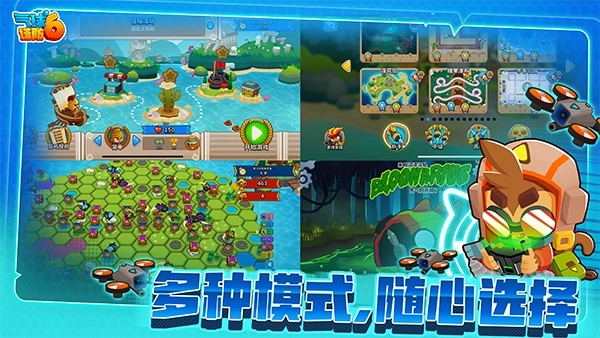 3、击破不同种类的气球,升级你的塔防实力,解锁最新的游戏玩法,融合独有的地方挑战模式。