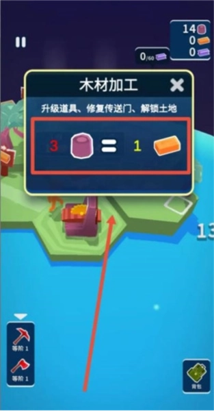 2、在关卡挑战中,通过砍伐木材,获得最初的资源