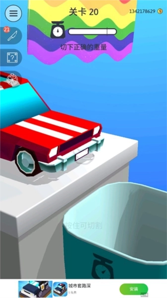 游戏的操作方式简单易懂,玩家仅需点击屏幕完成切割动作就能进行游戏,适配性很强,适合不同年龄段的玩家体验。