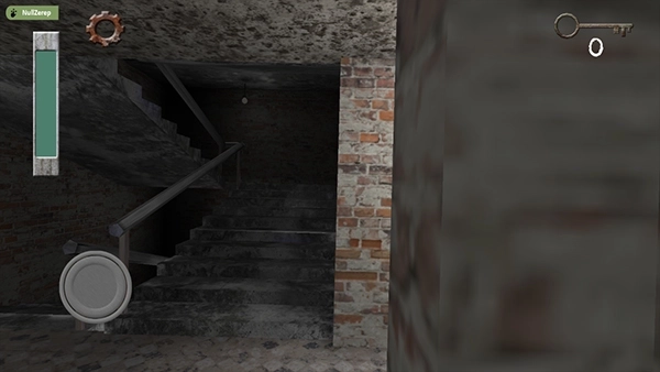 2、首先点击左上角的设置图标,调整至合适的控制灵敏度,新手玩家通常选择默认即可。接着操控游戏左下角的灰色权柄,先上楼梯去寻找第一把钥匙。