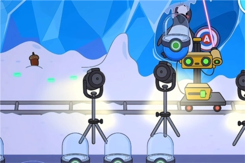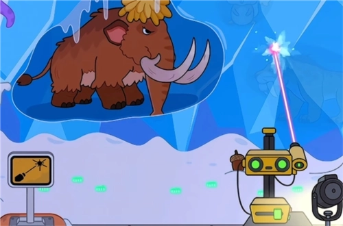 4、比如在这里,我拖动激光让冰块融化后,就能看到长毛象和小企鹅啦;