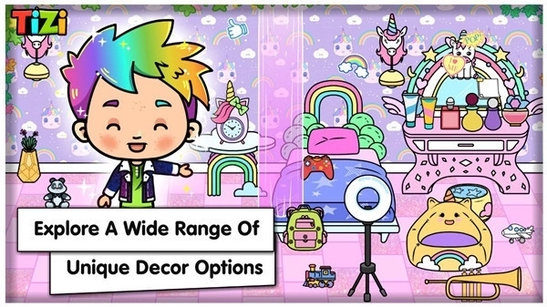 通过Tizi房间设计游戏,你可以探索各种有趣而富有想象力的房间,如迷人的冰雪城堡、可爱的泰迪熊房间、生机勃勃的黄色绿地、俏皮的粉色幼儿园、神奇的独角兽卧室等等。你可以自由选择!