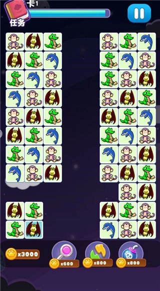 提示、炸弹等实用道具各有用处,提示道具可以让玩家更快找到能配对的图案,炸弹则能消除一定范围内的图案。