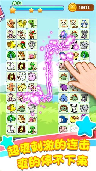 玩家需要点击两个相同的动物图案方块,只要连接它们的线路拐弯次数不超过两次,即可完成消除。