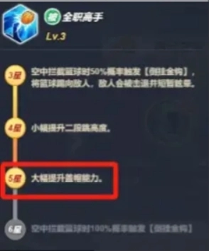 五星后,明日之星有一个被动,盖帽极限范围扩大。