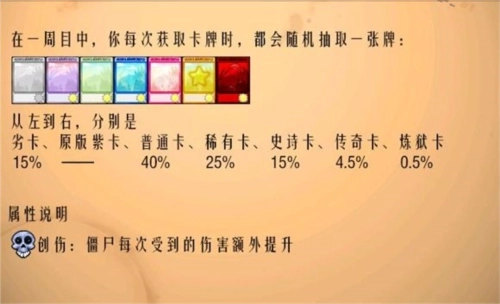 5、通关可以获得卡牌共7种,分别是白色劣卡、原版紫卡、绿色普通卡、蓝色稀有卡、粉红史诗卡、橙色传奇卡、红色炼狱卡。