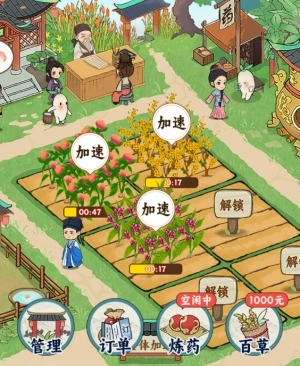 1、这款种植经营玩法的题材十分有意思,玩家既能通过种植药草来完成订单,还可以亲自进行炼丹操作。