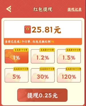 3、所获得的红包奖励均可按比例提现,提现门槛低至0.3元,且到账速度极快,堪称秒到!