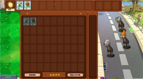 2、这个版本特意加入了睡眠僵尸,游戏玩法和原版植物大战僵尸基本一致。挑选要出战的植物,点击“一起摇滚吧”就能开启游戏。