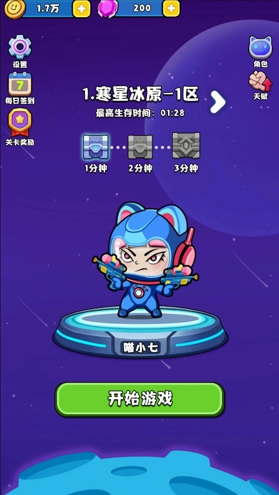 《异境英雄》是一款以太空为背景的休闲割草类小游戏,玩家在游戏里需操控角色移动走位、提升等级,持续消灭一波波涌来的怪物,以此推动关卡进程。