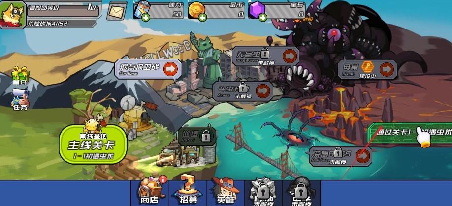 2、然后挑战关卡,完成前置关卡可以解锁后置关卡