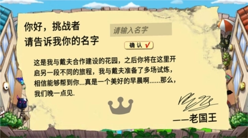 1、首先安装植物大战僵尸皇室战争版,完成安装后进入游戏,我们需要先注册一个游戏名字。