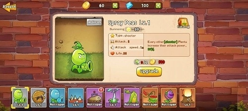 3、同时你可以为植物进行升级。