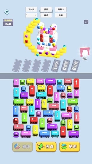 《螺丝小当家版》是一款轻松有趣的休闲解螺丝闯关手游!游戏里每个螺丝钉的位置都得仔细琢磨,要是解不开,随时可能失败,还在犹豫什么?这款游戏把挪车玩法和螺丝钉元素巧妙结合,玩家只需根据螺丝钉的颜色点击对应车辆就行,操作简单无难度,极易上手,适合各年龄段玩家,无聊时用来打发时间再合适不过啦!