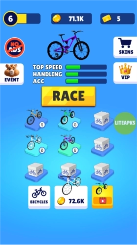 1、在赛道上全力驰骋,每次骑行结束后升级你的自行车,沉浸在震撼的视觉体验中。考验你的骑行技巧,在与对手的激烈角逐中突破自我极限,全力冲击冠军宝座。