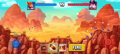 选好模式后便正式进入作战状态,我们可以通过左侧的滑轮操控坦克方向,将坦克移动到你觉得合适的位置,接着挑选要释放的技能,点击“FIRE”按钮即可完成发射。
