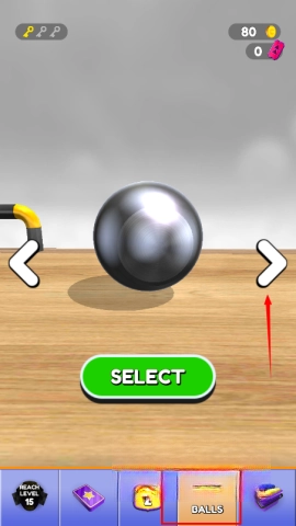 首先进入游戏主界面,接着切换至balls页面,然后通过点击左右箭头来进行选择。
