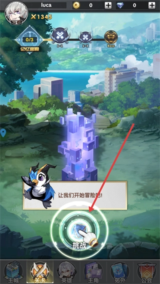 在游戏主页界面,点击挑战进入关卡。