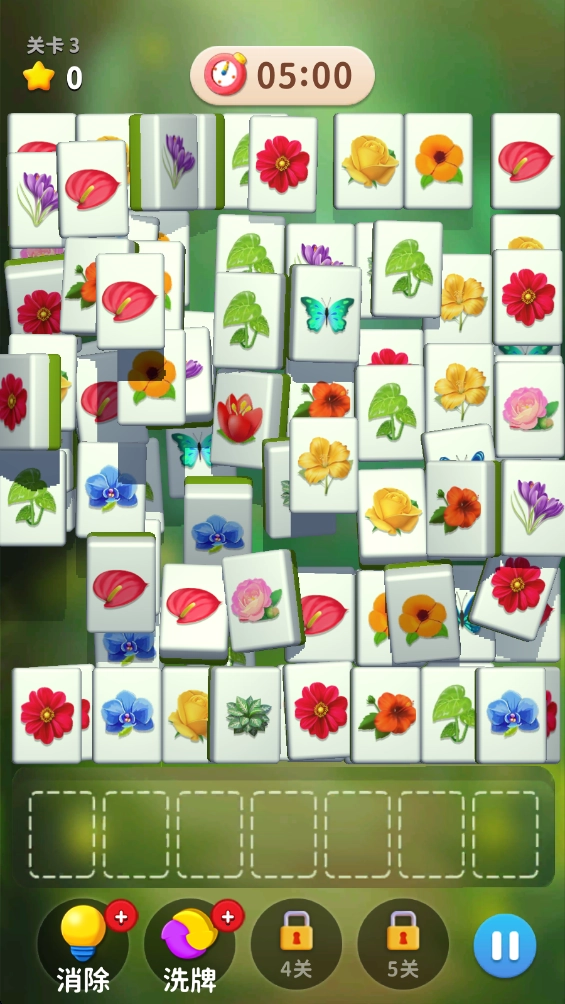 这是一款以花卉为主题的益智消除游戏,核心玩法聚焦于连接消除机制。在色彩斑斓的游戏界面中,玩家需要快速识别并连接三张相同图案的牌,以此完成消除任务,体验指尖操作带来的愉悦感。
