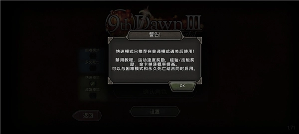 快速模式仅建议在普通模式通关后开启!该模式下会关闭教程,同时提供移动速度加成、经验与技能点加成,以及更高的金卡掉落几率。此外,它还能和困难模式、永久死亡模式叠加使用。